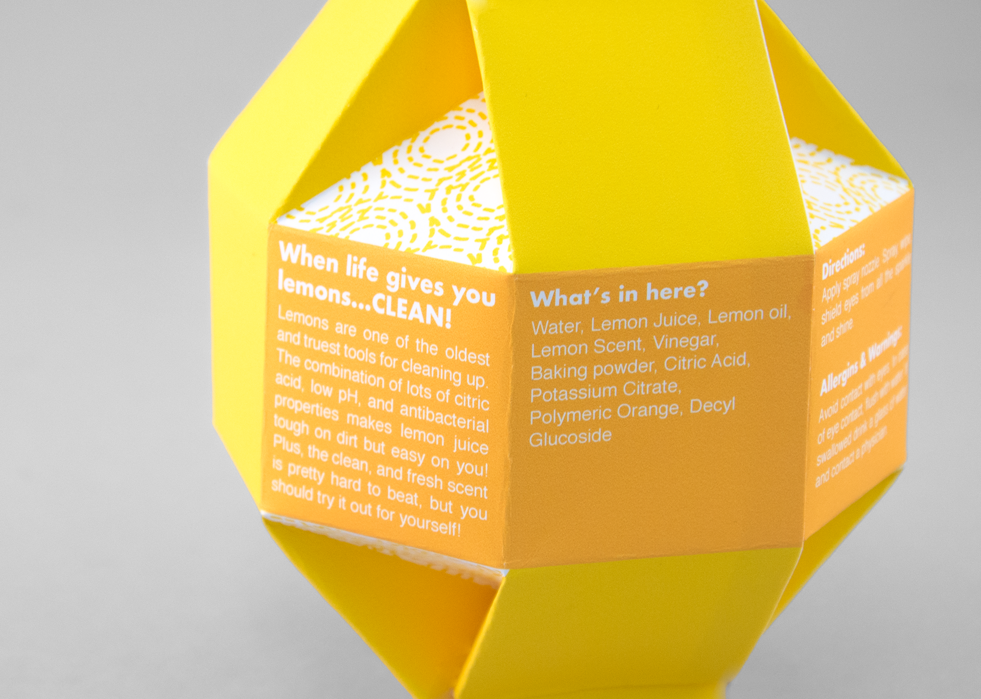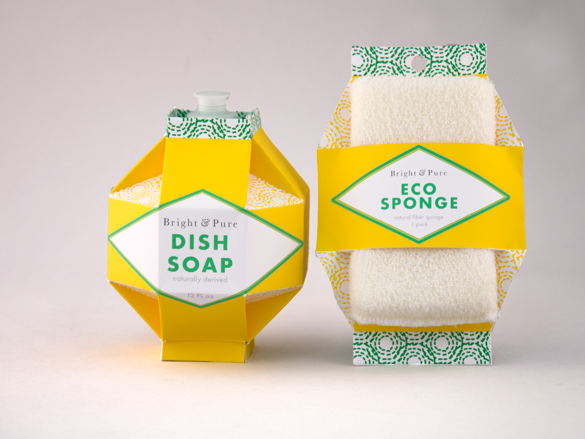 Bright and Pure's packaging was created to resemble the shape of a lemon (a main natural ingredient in all products). It was also made using paper products to further establish the eco friendly nature of the company. The PDP is kept minimal, and uses a san serif font to convey the modernity of the company.