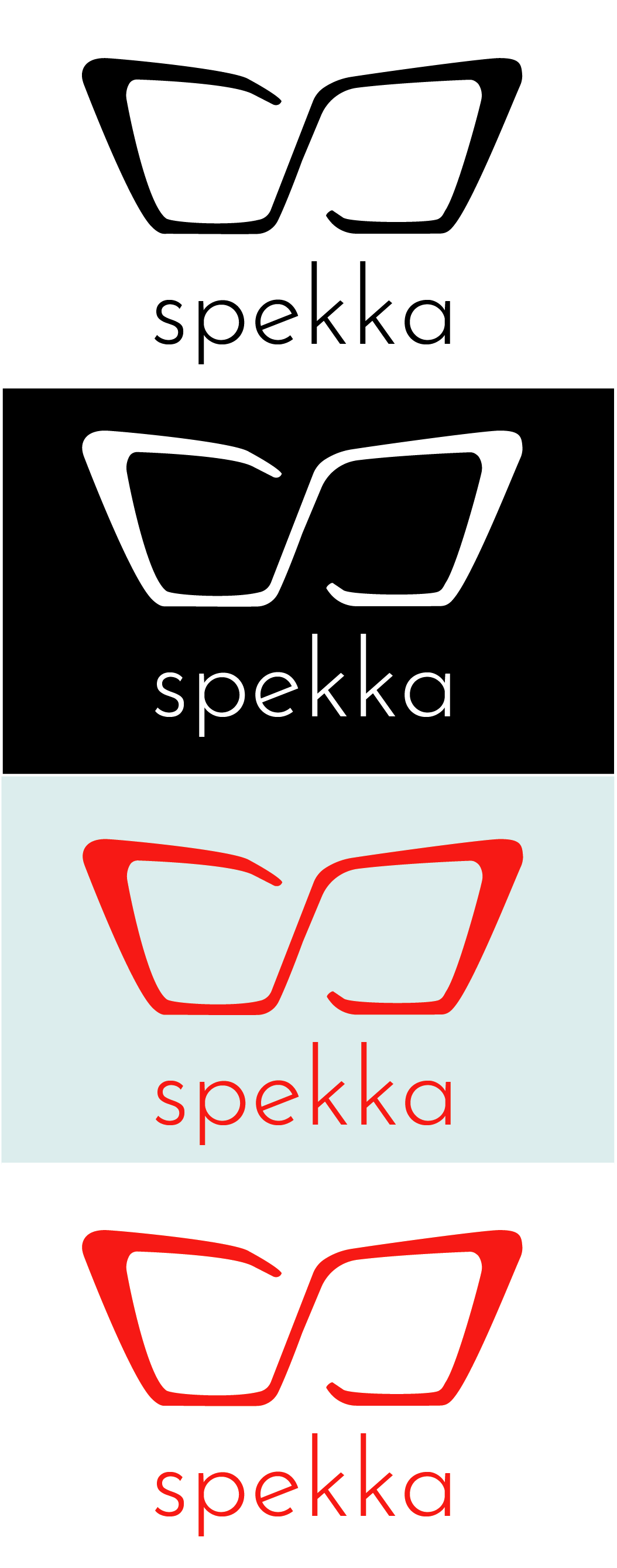Spekka is a hypothetical company specializing in locating misplaced glasses. The logo consists of an icon and a wordmark. The icon uses thick strokes and creates the shape of glasses. When turned on its side, it also creates an S shape which stands for Spekka. The wordmark is all lowercase, it uses a san serif typeface, and is thin stroked. The pairing of the thick stroked icon with the thin stroked wordmark creates balance within the logo.